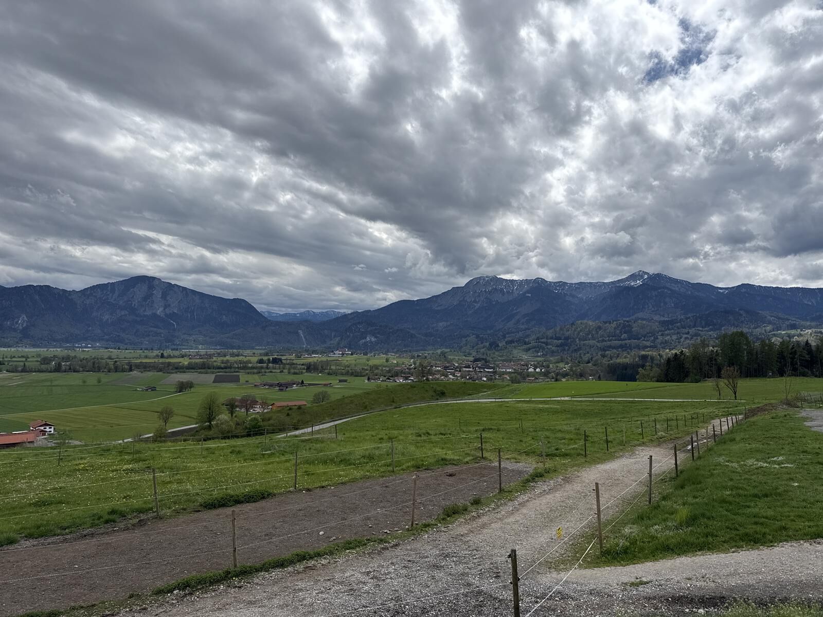 Vom Wanderparkplatz gehen wir den Loisachweg weiter unter der Autobahn durch und hier gleich rechts und links um die Kurve den Berg hinauf. Nach einem kurzen Waldstück rechts über die Wiese zur Straße...