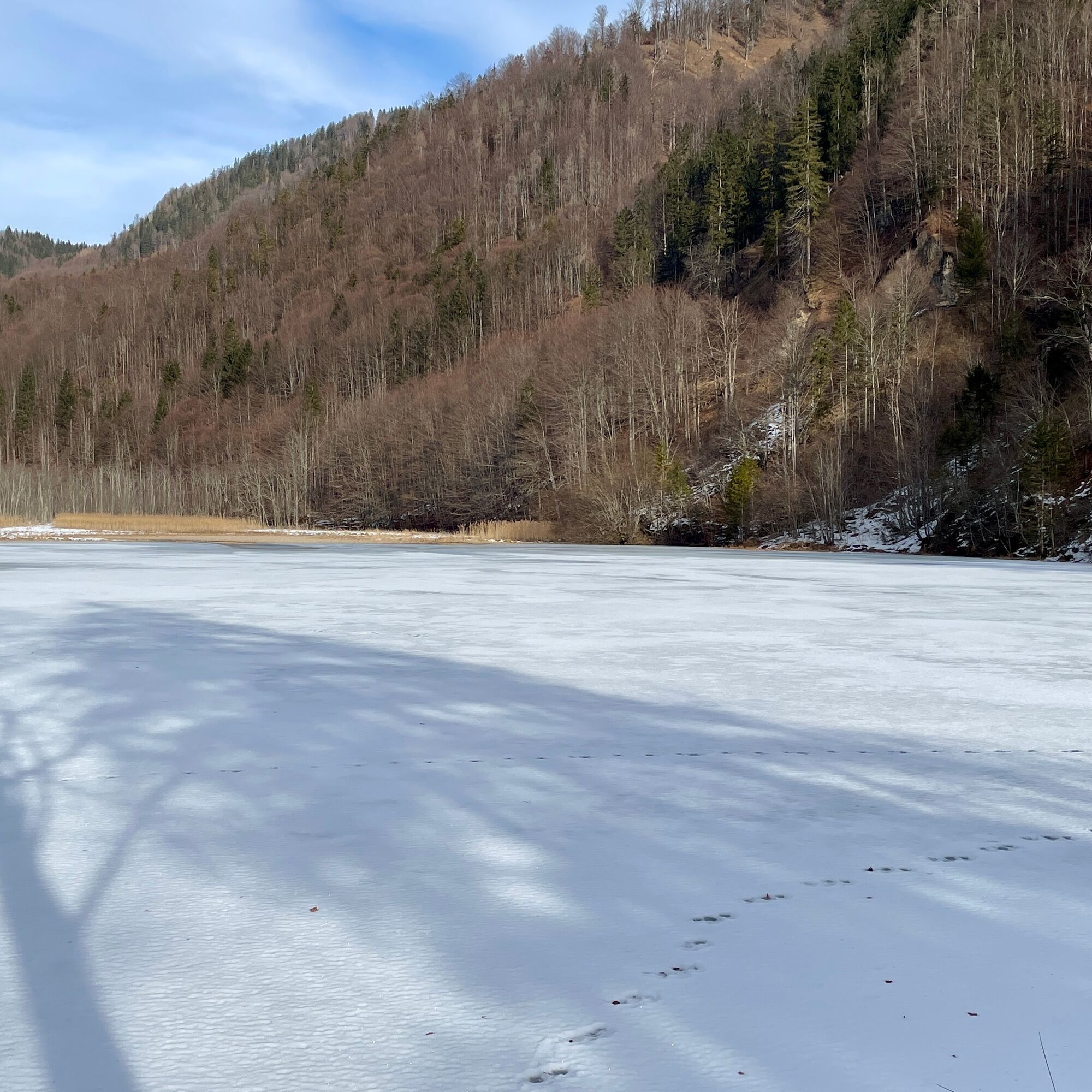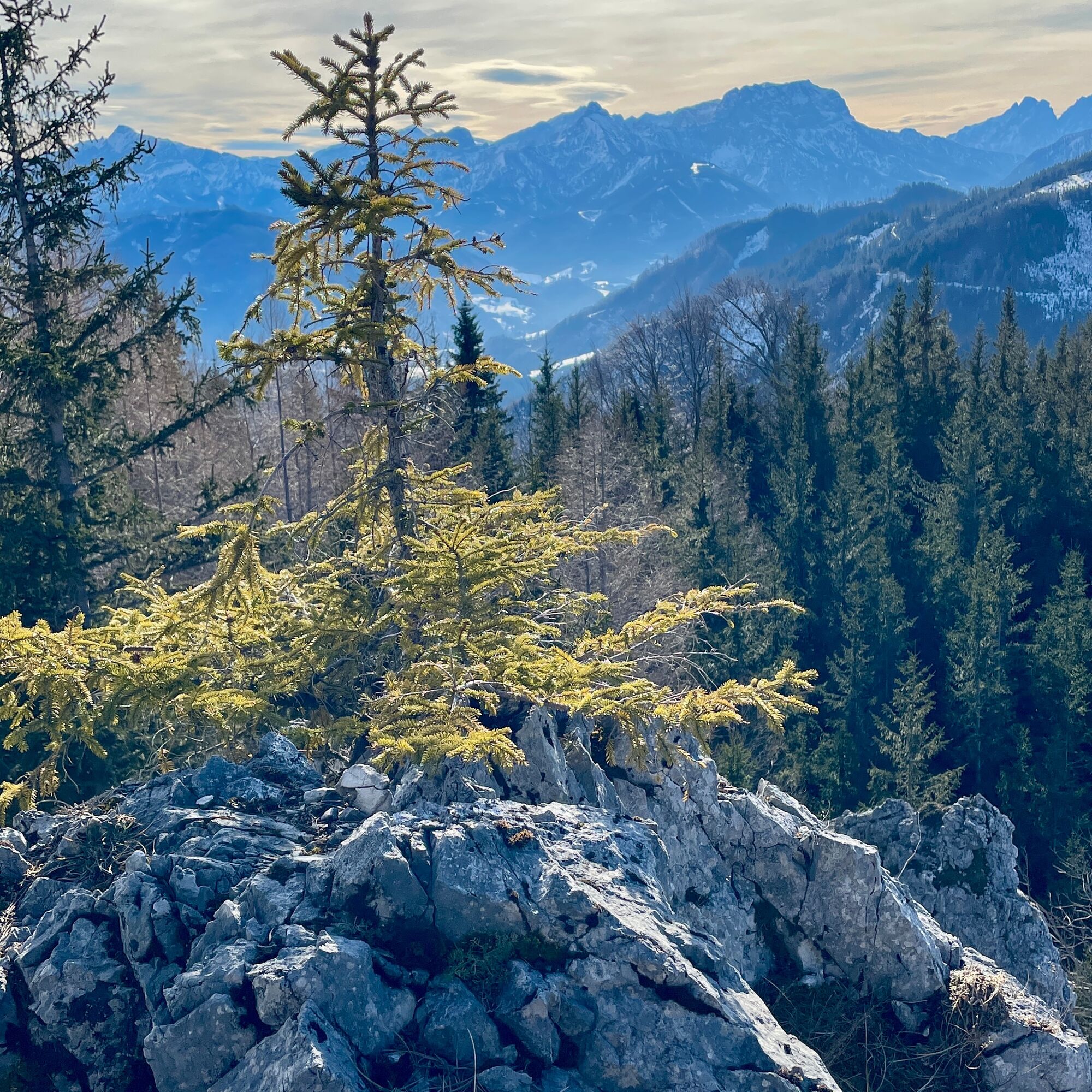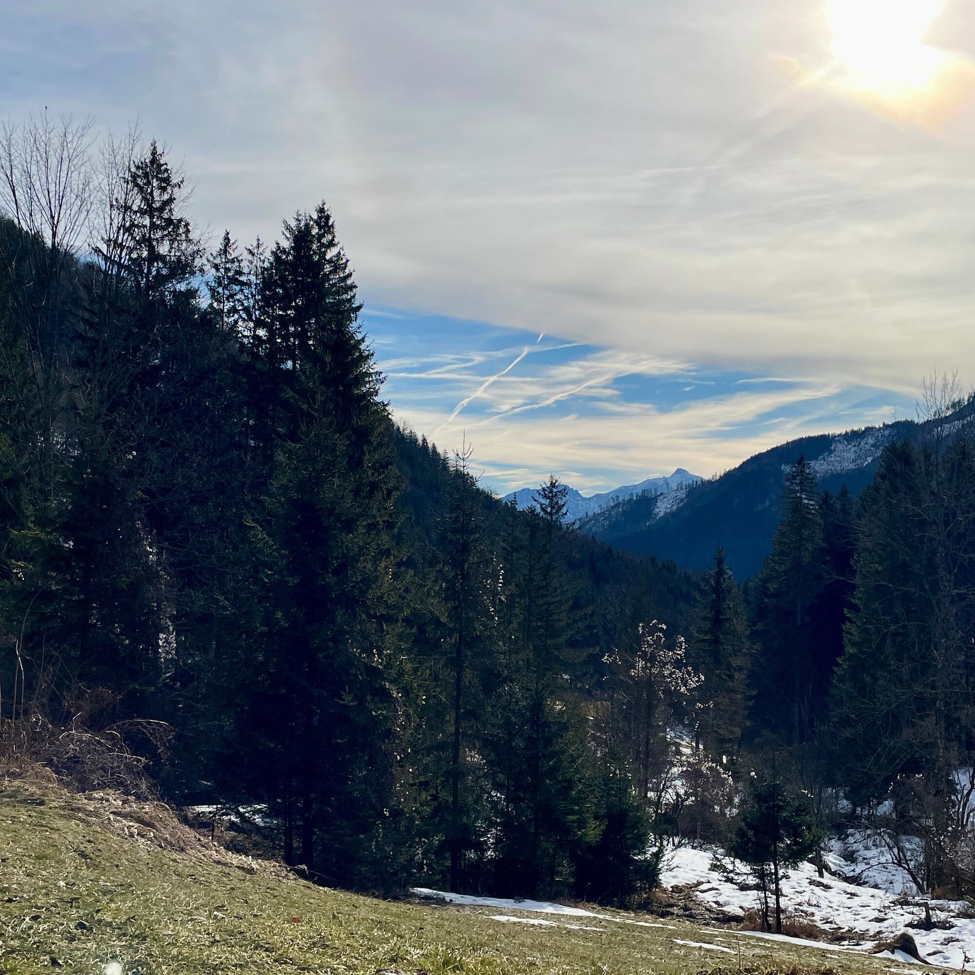 We start the tour at the Schönau bus stop, alternatively there is also parking down by the bridge over the Enns river.After the bridge, we walk along the Schönau main road, past the (former ?!) Jagahansl snack station until we come to some houses in Schönau an der Enns, from here we continue on gravel forest roads. At first we walk flat along the Schleifenbach and then continue to climb until we reach the Schleifenbach Klause after 4.5 km. A newly built wooden bridge leads over the hermitage to a small hut next to the Borsee lake. We continue left along the lake, past the wild meadow to the Kogleralm. Here we leave the forest road and climb up a path in the forest for the next 1.5 km. We continue on very well-maintained forest roads until we reach the highest point of our loop at km 10.5. A small rock to the right of the road marks this point with a wonderful view of the Bodenwies and the nearby Gesäuse. From here it's all downhill, not too steep for the next 8 km along the road. Again and again with a view of the emerald green Enns river, until we reach the Enns bridge again.