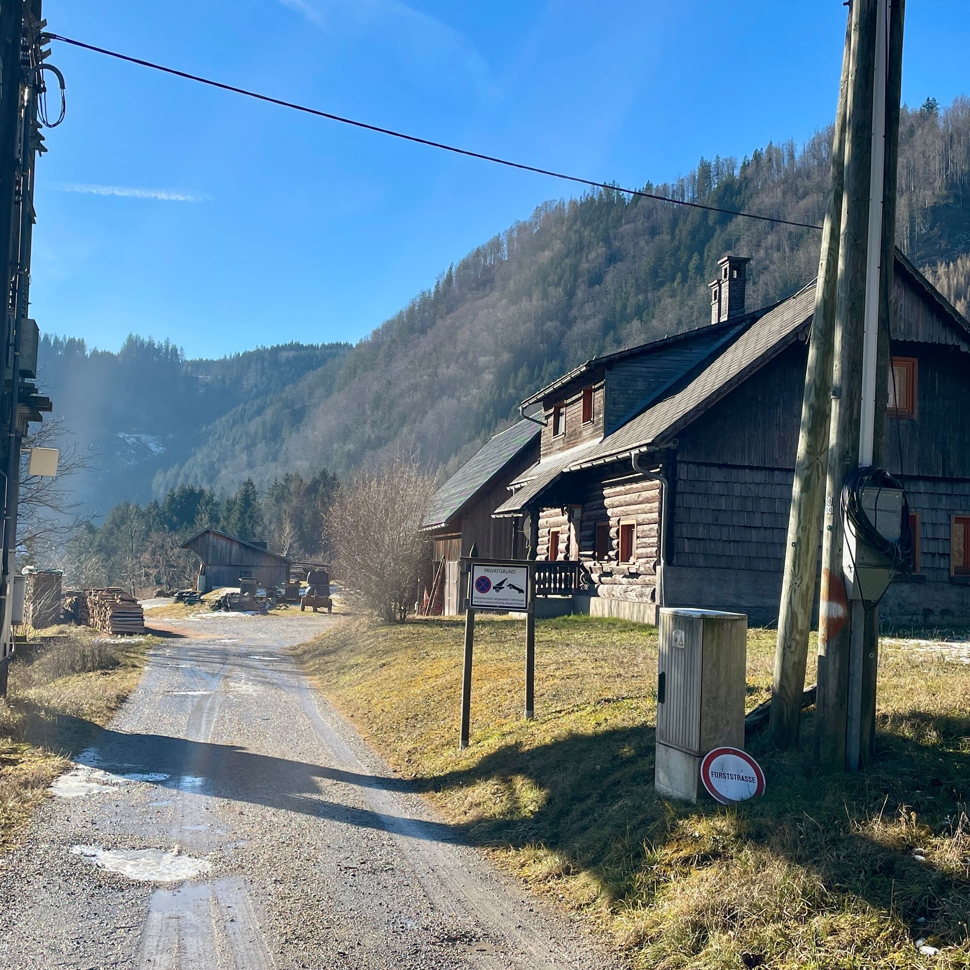 The loop to the Schleifenbach-Klause is 18 km long and has 697 m of ascent. The route leads almost exclusively along well-maintained forest roads except for a small section at the Kogleralm.