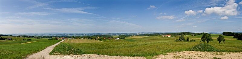 From the church square, we walk along the main street and turn right into Schulweg. Past the secondary school, the route continues on a field path. We keep heading north and reach Etzing, where there is also a Donausteig rest area. After Etzing, we turn right and walk down towards the Danube. At the last farm, we leave the road and first go over a field path, then through the forest down to Schlögen. Passing the Hotel Donauschlinge, we walk up to the Schlögener Viewpoint and then follow the Ciconia Path for a short stretch. Up to Haibach, we follow the Donausteig route. In the Danube slopes, we turn towards Wiesing and cross the Nibelungen federal road after a descent. On the other side, we ascend past a ski slope again. We follow the hiking trail but do not go to the Stauff ruin, instead turning right before it. At Dunzing, we leave the forest and then walk again through the cultural landscape. We pass the Fadinger monument and two inns before returning to St. Agatha.