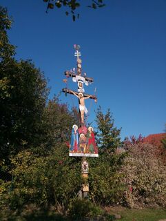 Auf der Höhe des ersten Hauses der Ortschaft Hörbach erreichen wir links das imposante Soldatenkreuz.