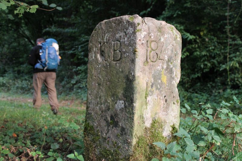 Following the border, we descend a bit and pass under the motorway. Those paying attention will notice that the border stones here have completely different inscriptions: "A" and "P" and other years. This path additionally marks the border between the local municipalities Albessen and Pfeffelbach.