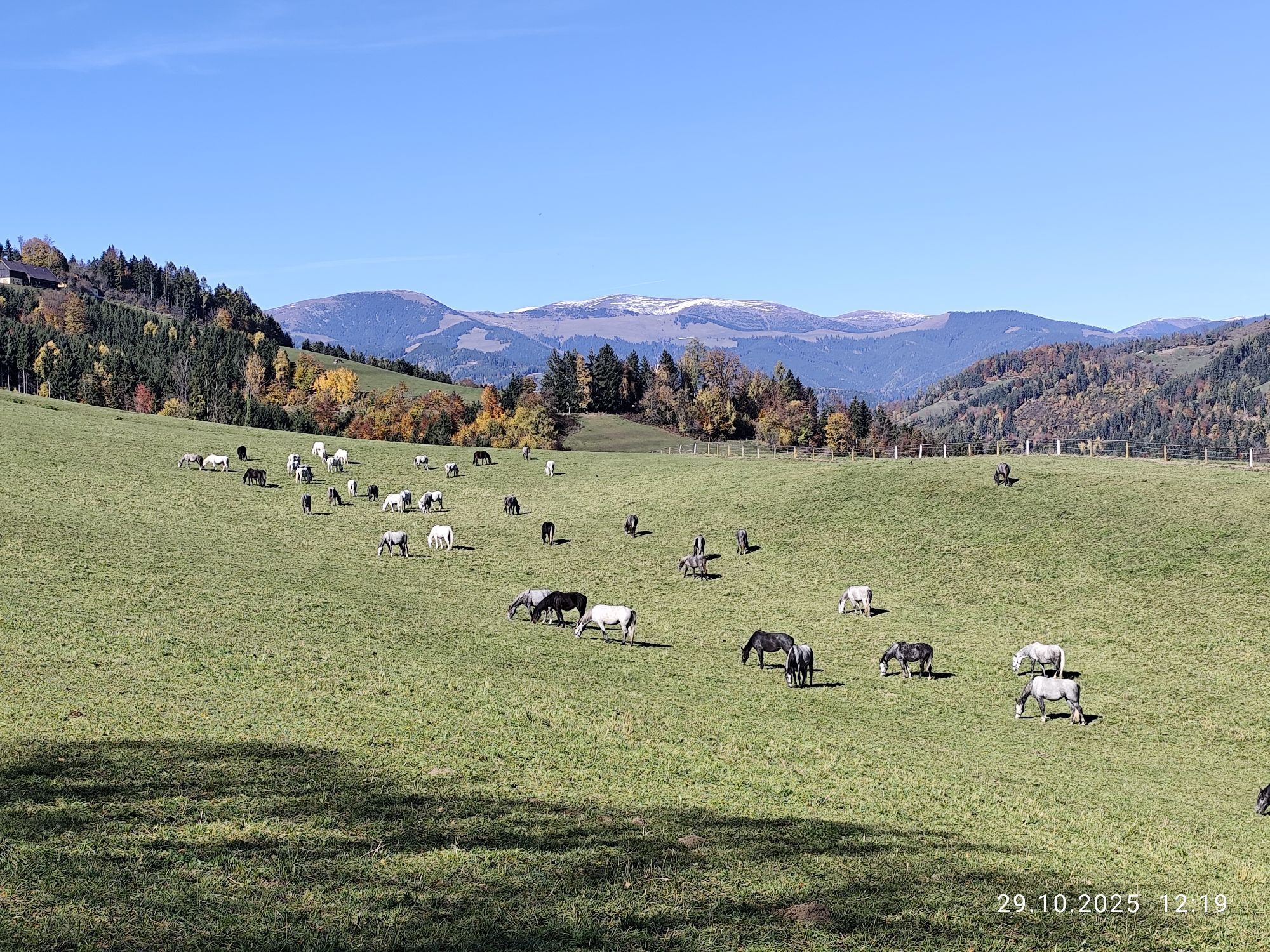 Wir starten am Parkplatz des Lipizzanergestüts Piber.