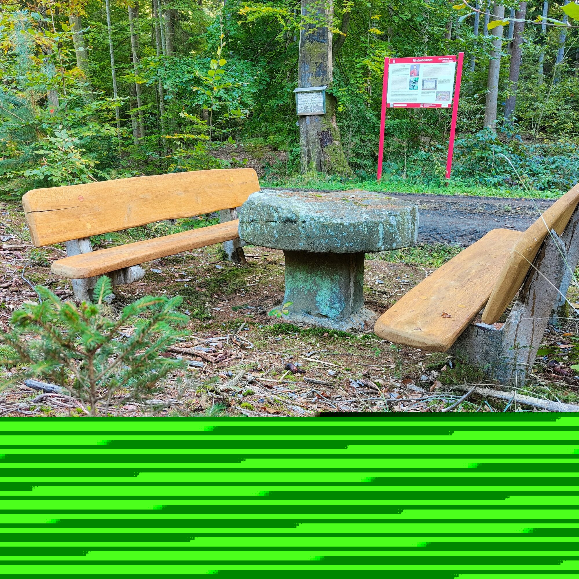 Downhill on the asphalt road towards Billmuthausen, the tour soon turns left onto a forest path. After about 200m, you reach the destination: the Fürstenbrunnen.