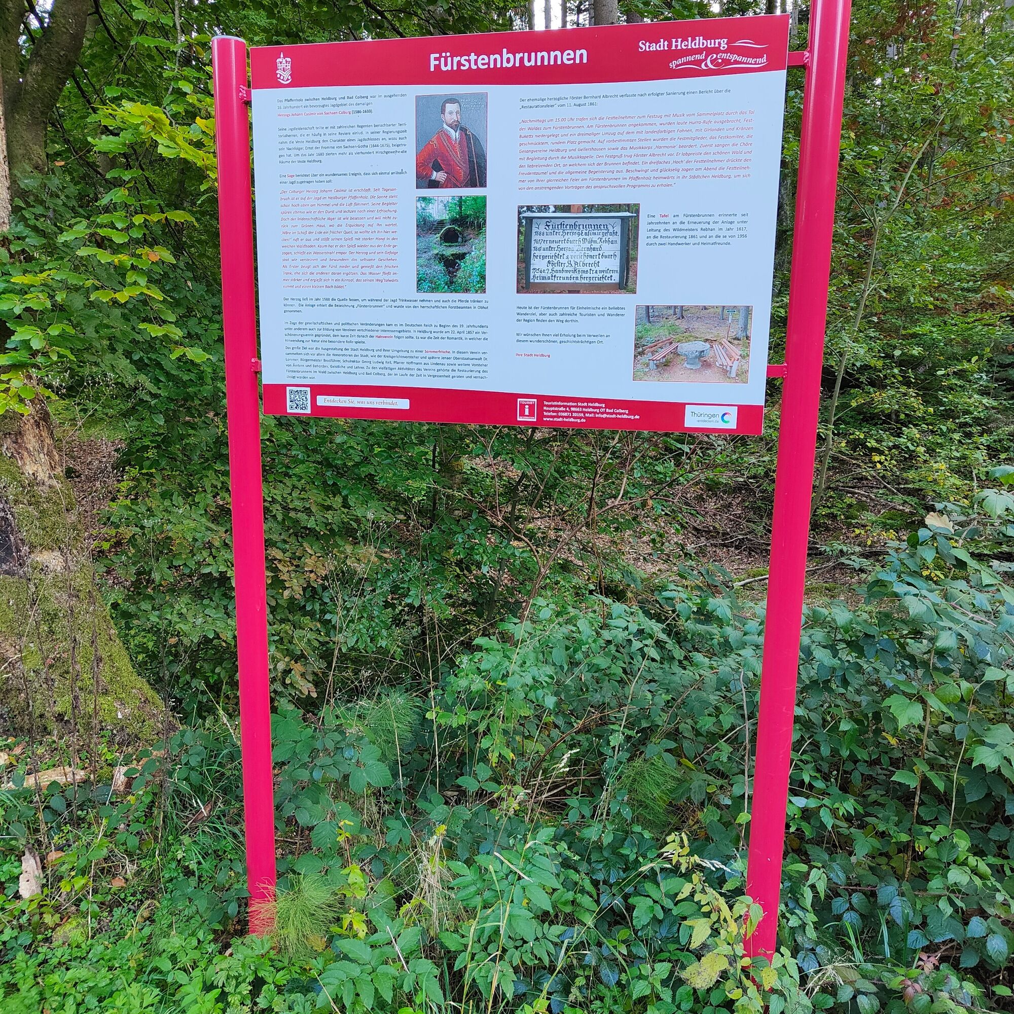 Duke Johann Casimir of Saxe-Coburg had the spring enclosed in 1588 to have drinking water and to water horses during hunting. He shared his passion for hunting with numerous rulers of neighboring territories, whom he often invited to his hunting grounds. During his reign, the Heldburg fortress took on the character of a hunting lodge, to which his successor, Ernest the Pious of Saxe-Gotha (1644-1675), also contributed. Over time, the spring and resting place have been repeatedly renovated and have become a popular hiking destination today.