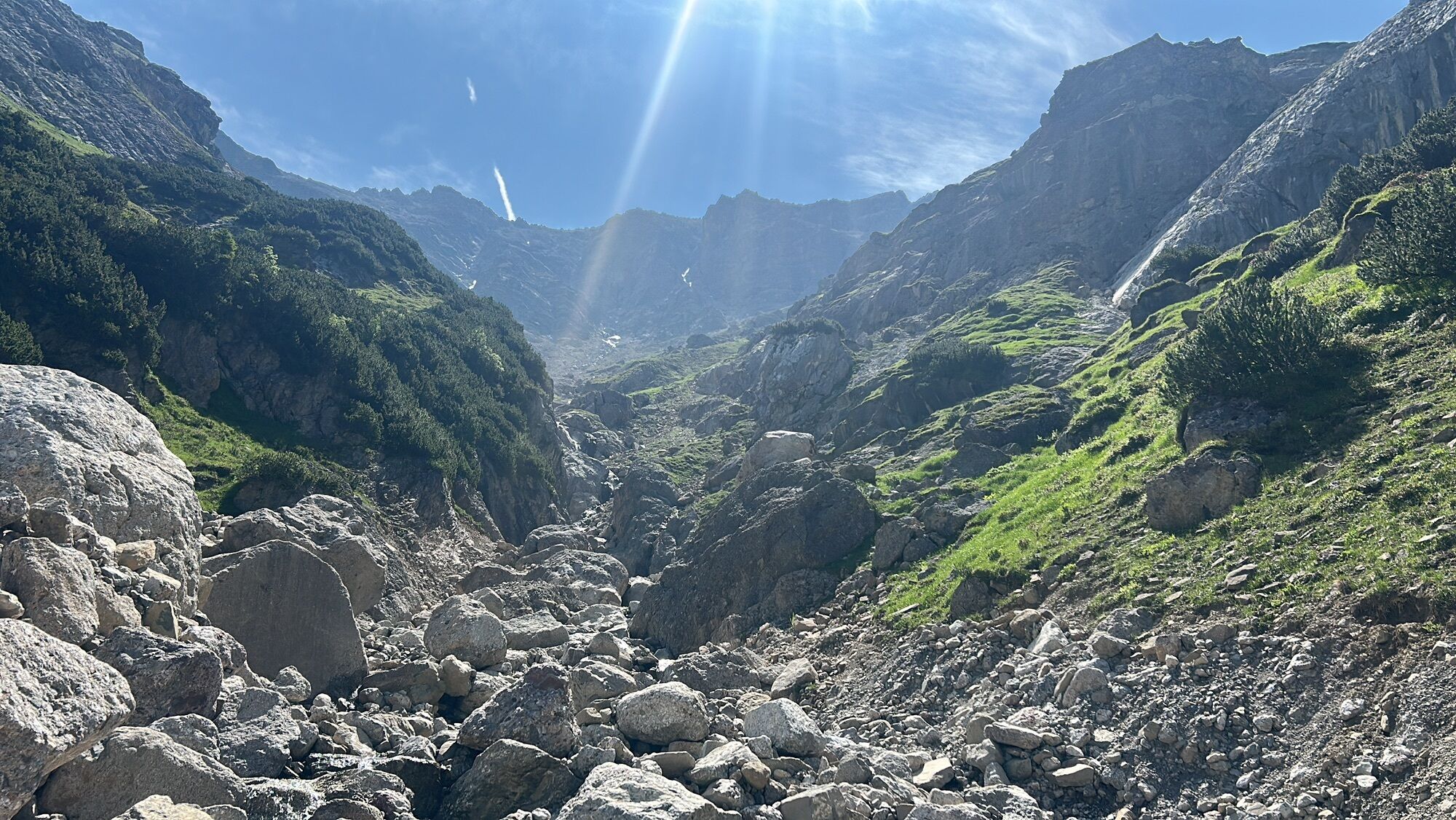 Von Hütte ausholend über steile und kehrenden absteig in Angertal und folg die Angerle Bach zum unten nach Boden.